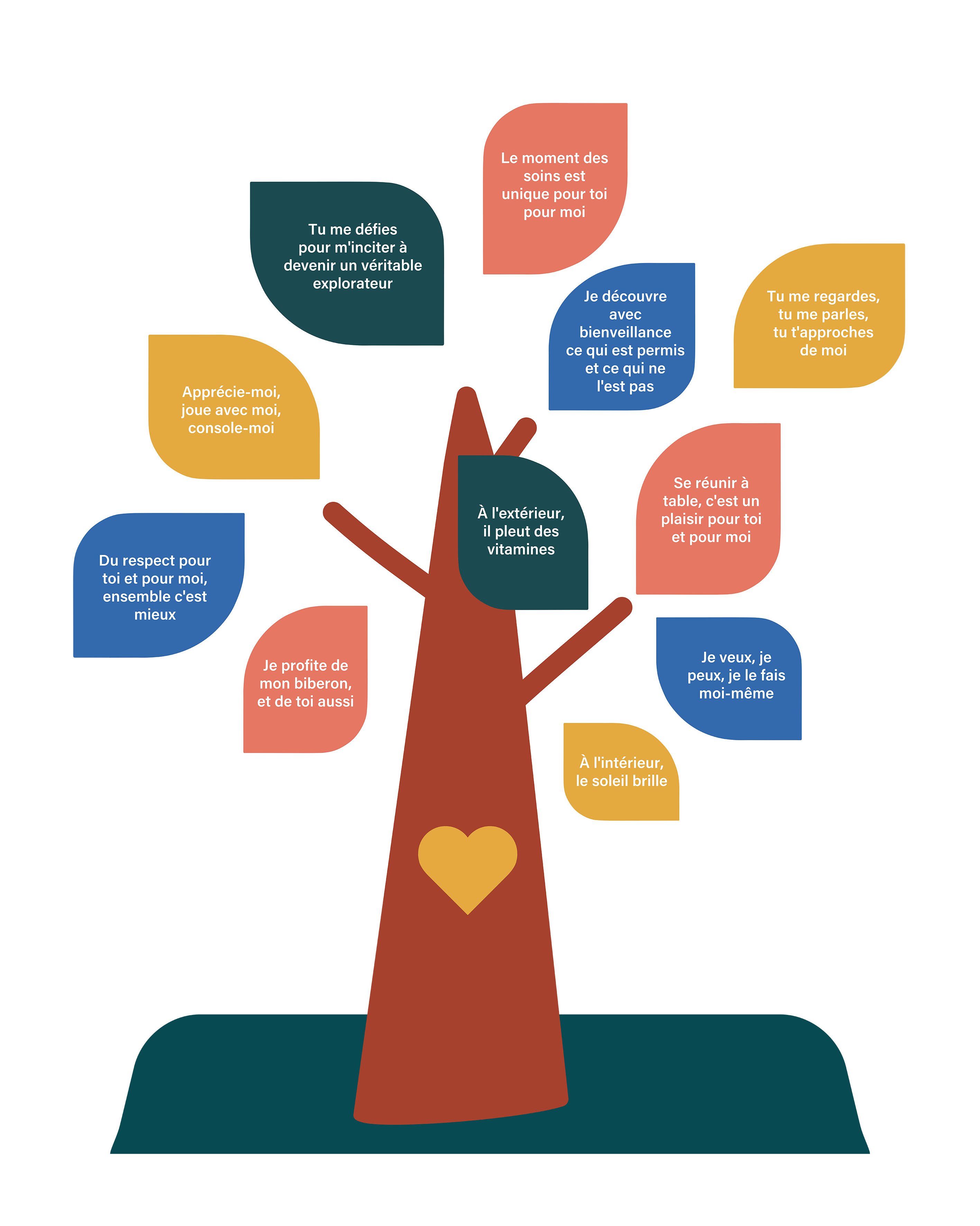 Les soins, les repas, la prise des boissons et le coucher sont les moments où nos puéricultrices peuvent accorder toute leur attention à chaque enfant. Nous prenons le temps pour le faire pour que les enfants se sentent en sécurité et protégés au sein de l'accueil.