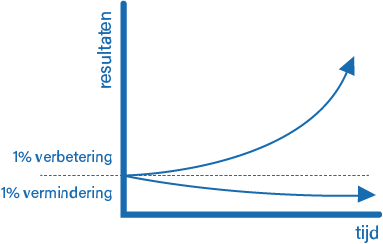 Een verbetering van 1% klinkt misschien als een kleine winst. Maar als je elke dag, een jaar lang 1 procent beter wordt in iets, dan ben je op het einde van het jaar zevenendertig keer beter.